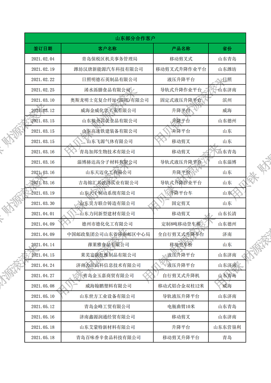 山東部分客戶3